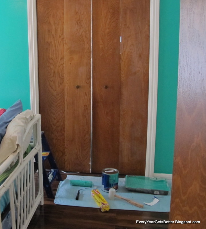 Then I did the actual painting. In case you wondered how a room looks mid painting: